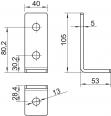 41 x 41 mm ve 41 x 21 mm profil raylarının 90°'lik açıyla bağlanması için 3 delikli montaj konsolu.