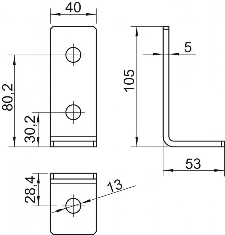 Mounting bracket, 90° with 3 holes FT