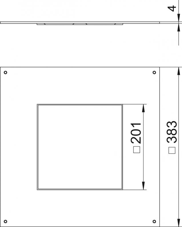 Mounting lid for underfloor junction and branch box of type UZD350-3 and UZD350-4 for the installation or creation of an installation unit. Installation opening 3 mm recessed as a later blanking lock with lid blind plate.
