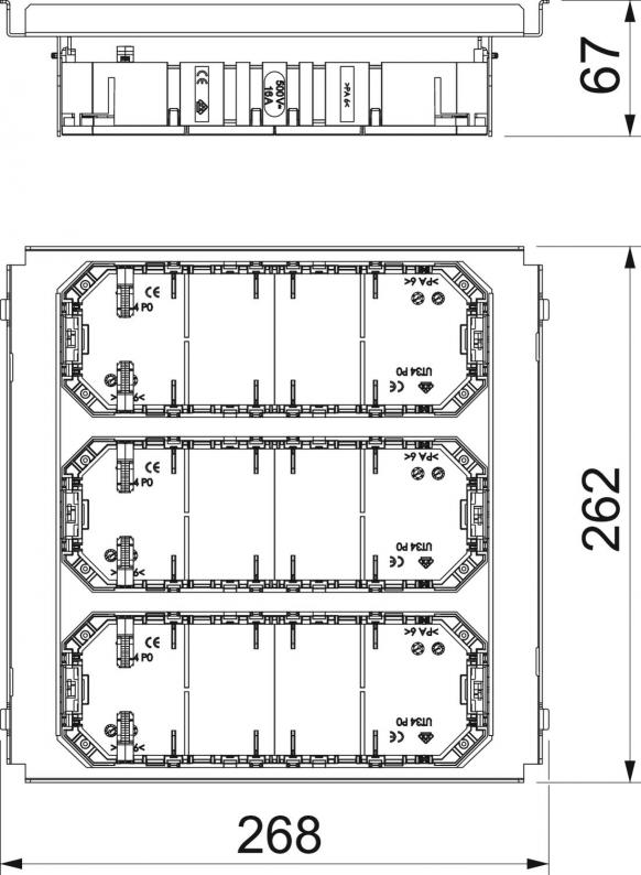 Mounting set with three universal supports of type UT3 for suspended installation in the underfloor junction and branch box UZD250-3.