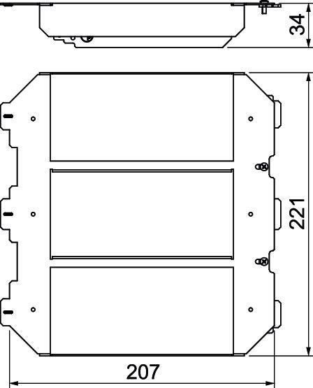 Mounting support for accepting three APMT5 cover plates, which aid the installation of accessories in installation units of nominal size 9.