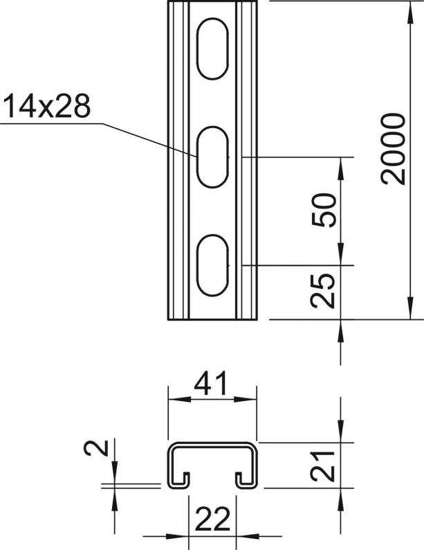Heavy-duty C profile rail for individual installation of support constructions, e.g. for cable trays or as a panel for switchgear cabinets. Can also be used for cable routing, in conjunction with clamp clips with a U foot.