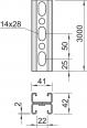 Heavy-duty profile/mounting rail with continuous perforation in base, slot width 22 mm. Double version, i.e. two profile rails are interconnected on the base (clinched).