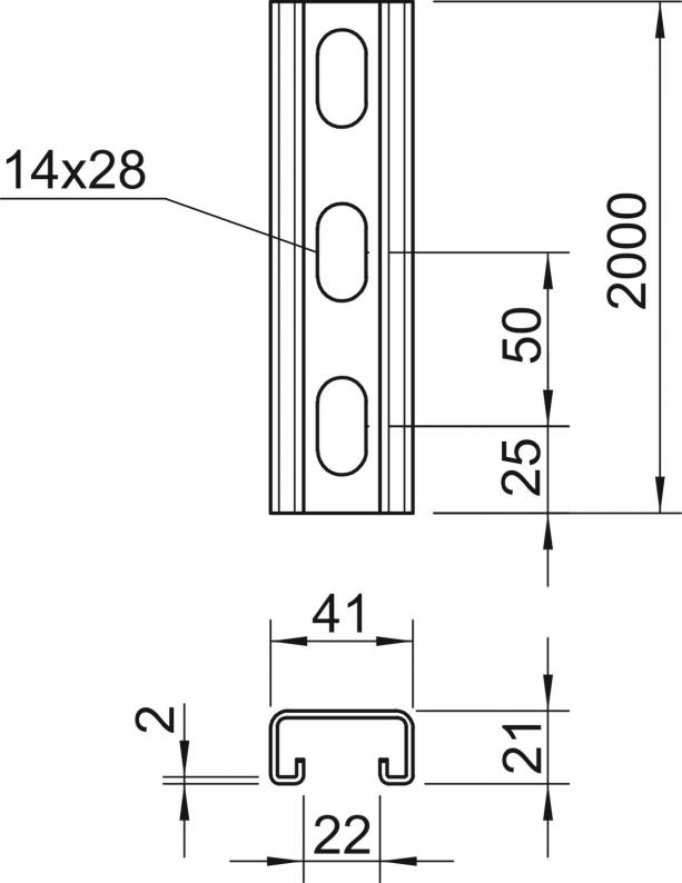 Heavy-duty C profile rail for individual installation of support constructions, e.g. for cable trays or as a panel for switchgear cabinets. Can also be used for cable routing, in conjunction with clamp clips with a U foot.