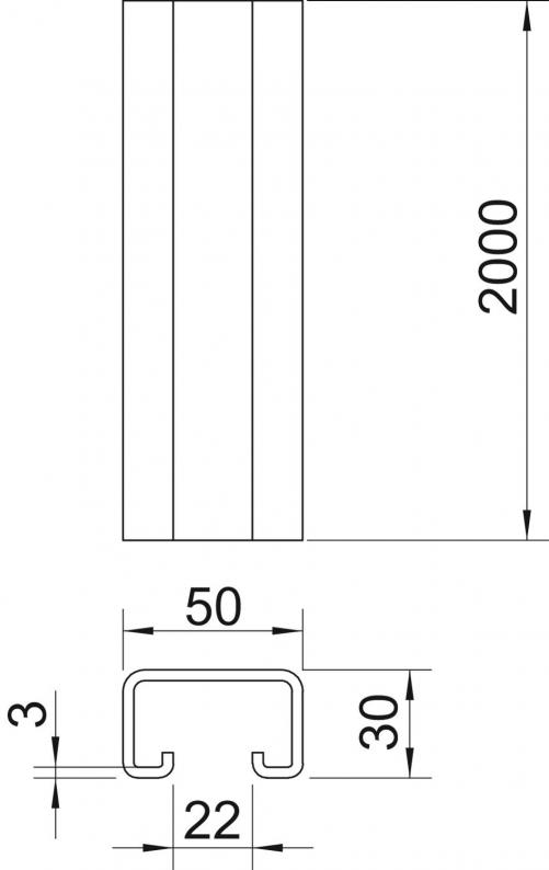 MS5030 mounting rail, slot 22 mm, FT, unperforated