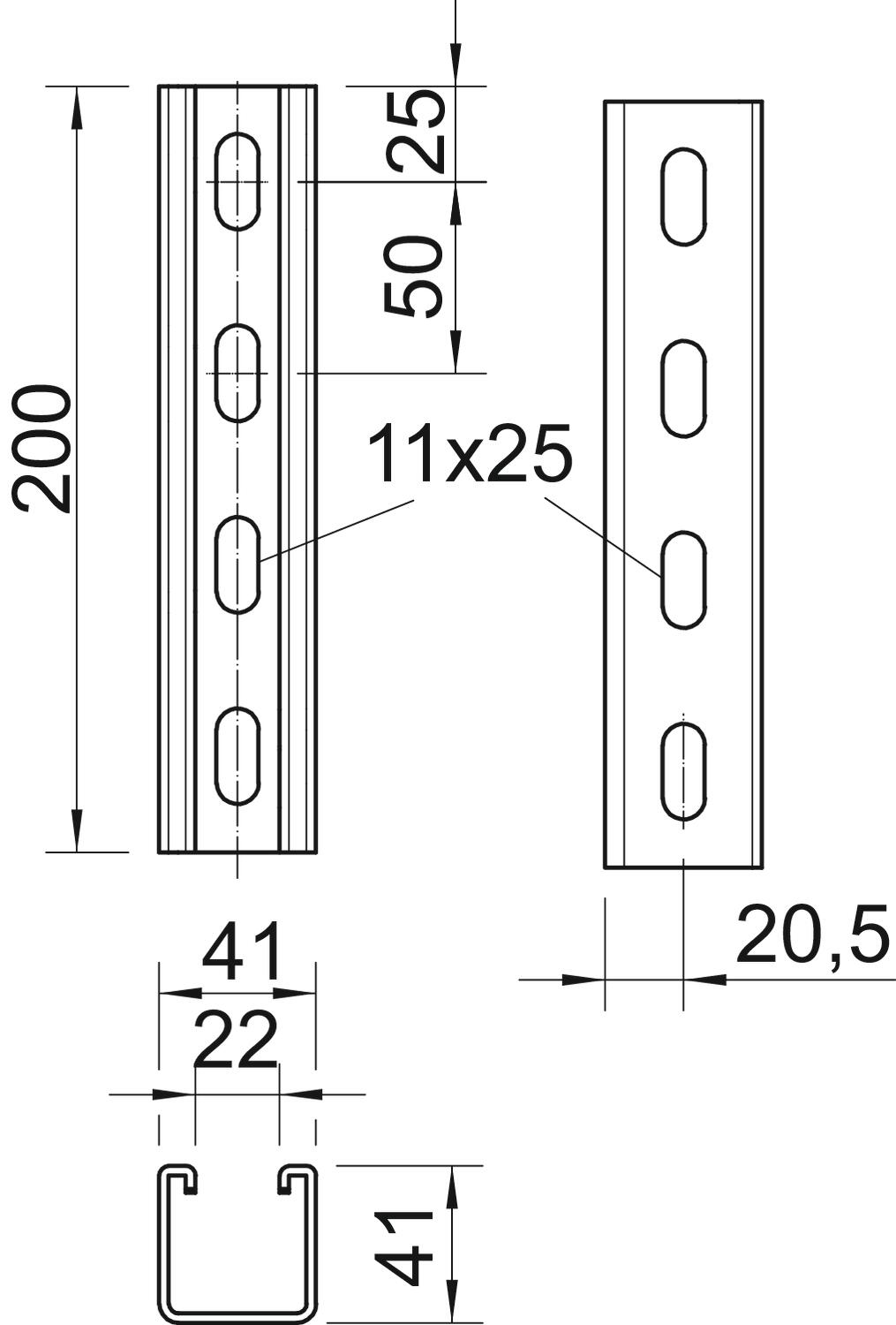 MSL4141 mounting rail, slot 22 mm, FS, perforated