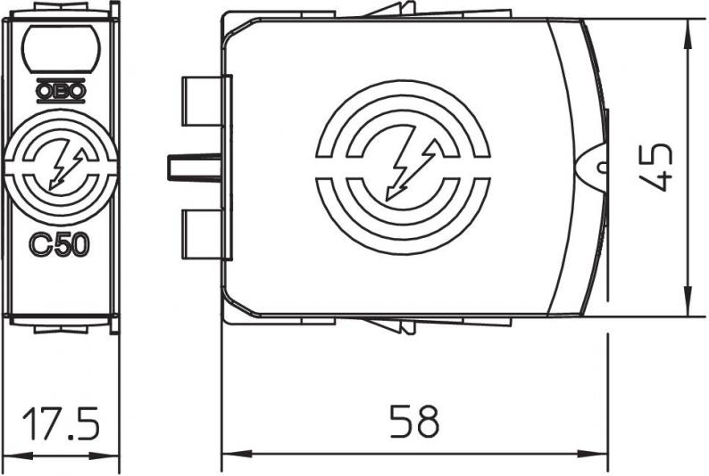 • Lightning current discharge capacity up to 50 kA (10/350) in total