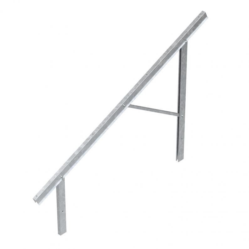 Pre-mounted support in small, medium or large size to mount free-standing photovoltaic systems in combination with support profiles and end/connection clamps. Mounting with ramming piles in the earth or with stands on concrete foundations.