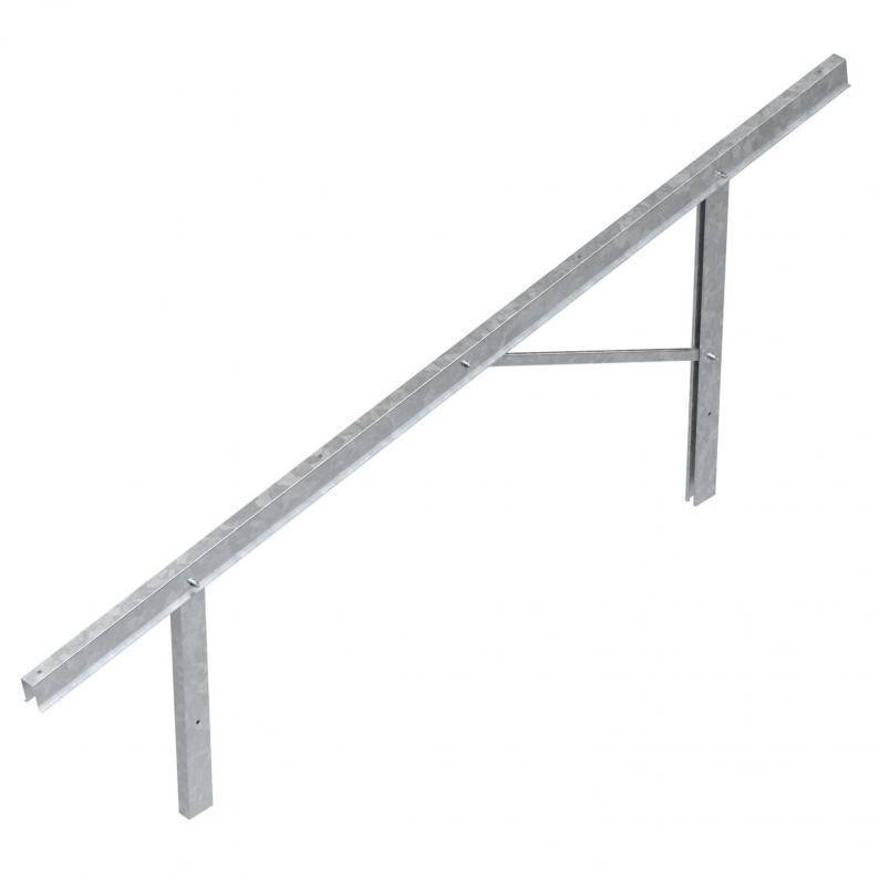 Pre-mounted support in small, medium or large size to mount free-standing photovoltaic systems in combination with support profiles and end/connection clamps. Mounting with ramming piles in the earth or with stands on concrete foundations.