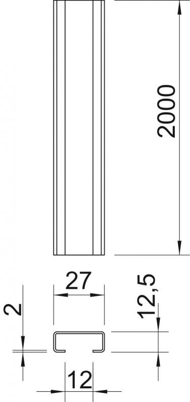Profile rail CL2712, slot 12 mm, BK, unperforated