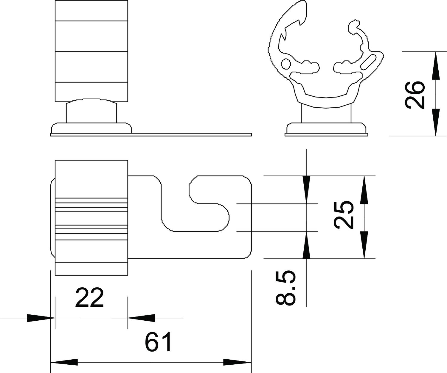 • Bottom section with Ø 8.5 mm slot