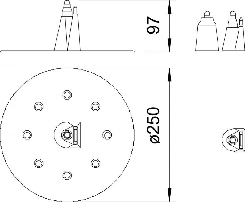 • For round conductors 8–10, air-termination rods 16 mm