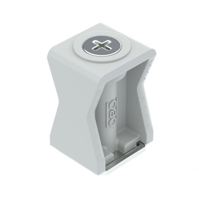 Ayrıca 11 - 12 mm yarık uzunluğuna sahip raylar için de uygun, polistrol kelepçe gövdesi, darbeye dayanıklı, halojen içermez, açık gri RAL 7035; çelik metal parçalar, elektro galvaniz kaplama.