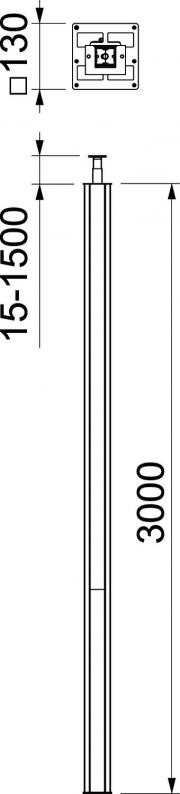 The service pole is fitted with an internal clamping device, which enables convenient tensioning between floor and ceiling. An extendable telescope provides a clamping range of 3,015–4,500 mm. Cables can be inserted both through the telescopic square pipe and directly into the main profile from below or above.