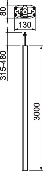 The clamping device attached at the top of the ISS service pole can be variably adjusted between 315 and 480 mm. Possible colour options are aluminium anodised or pure white. The pole is based on a slender, oval aluminium profile. There are two 45 mm system openings on opposite sides for direct installation of Module 45® devices.