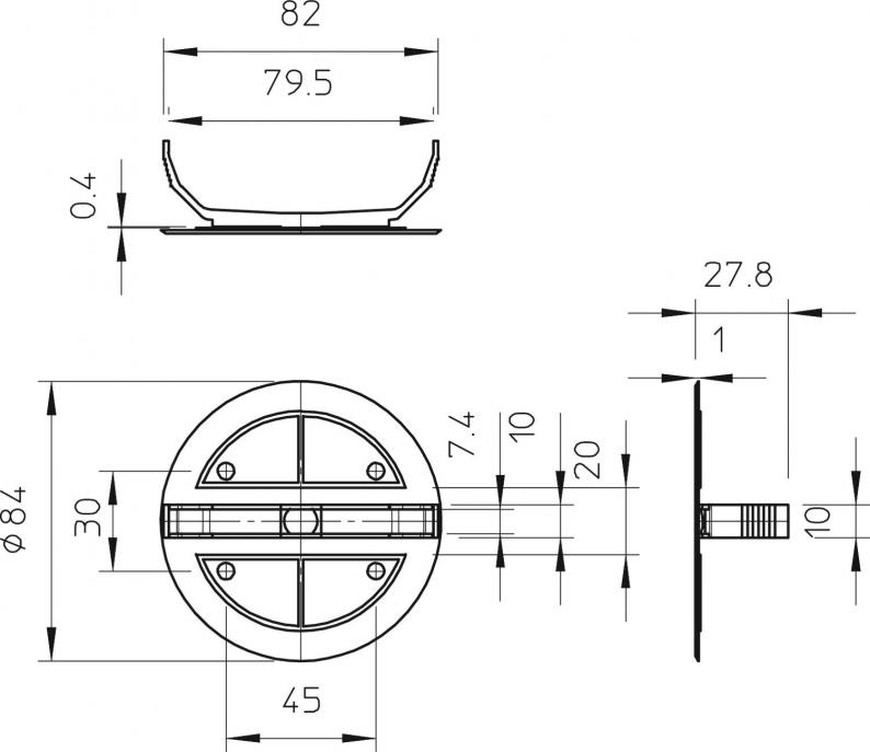 Merkezine elastik gergi yayı tutturulmuş yaylı kapak, 70 mm çapındaki kutular için, kapak kenarı kaplama üstünde, yüzeyi perdahlı.