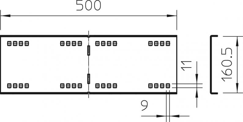 Angle connector for wide span cable trays and ladders with a side height of 160 mm.