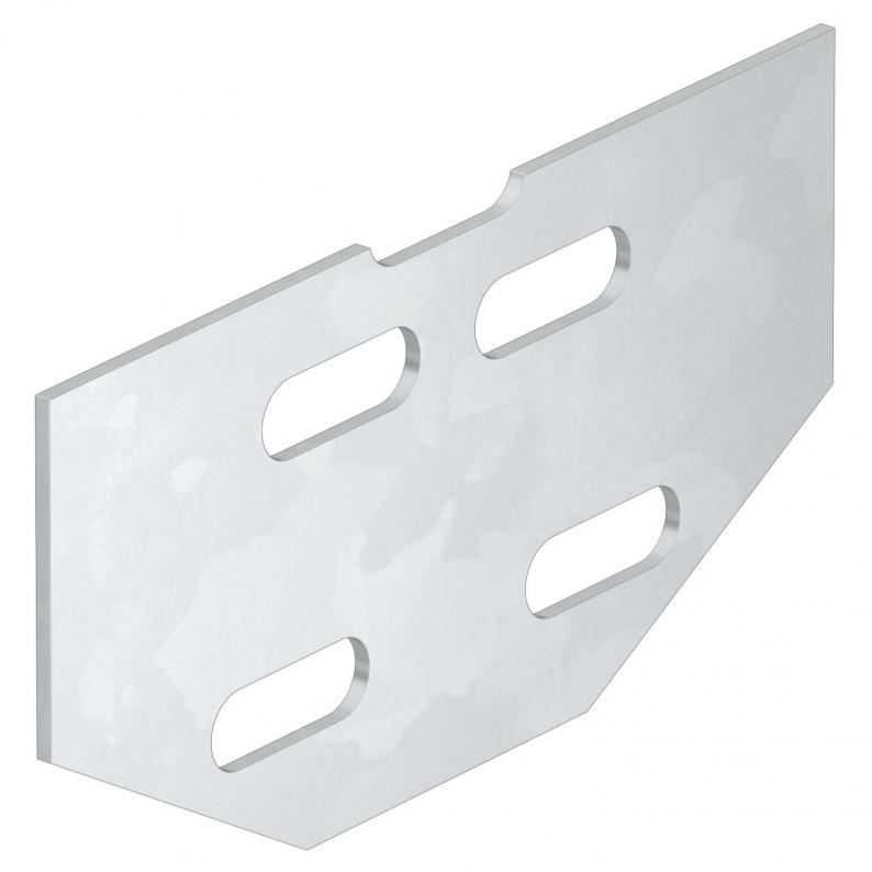 The vertical straight connector can be used to connect cable trays with the side height 60 mm. Mitre joints that rise and fall up to an angle of 60° can also be realised with this connector.