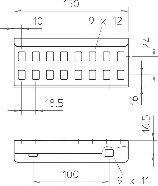 Straight connector as external connector to connect cable ladders and fittings with a side height of 60 mm and continuous rail perforation.