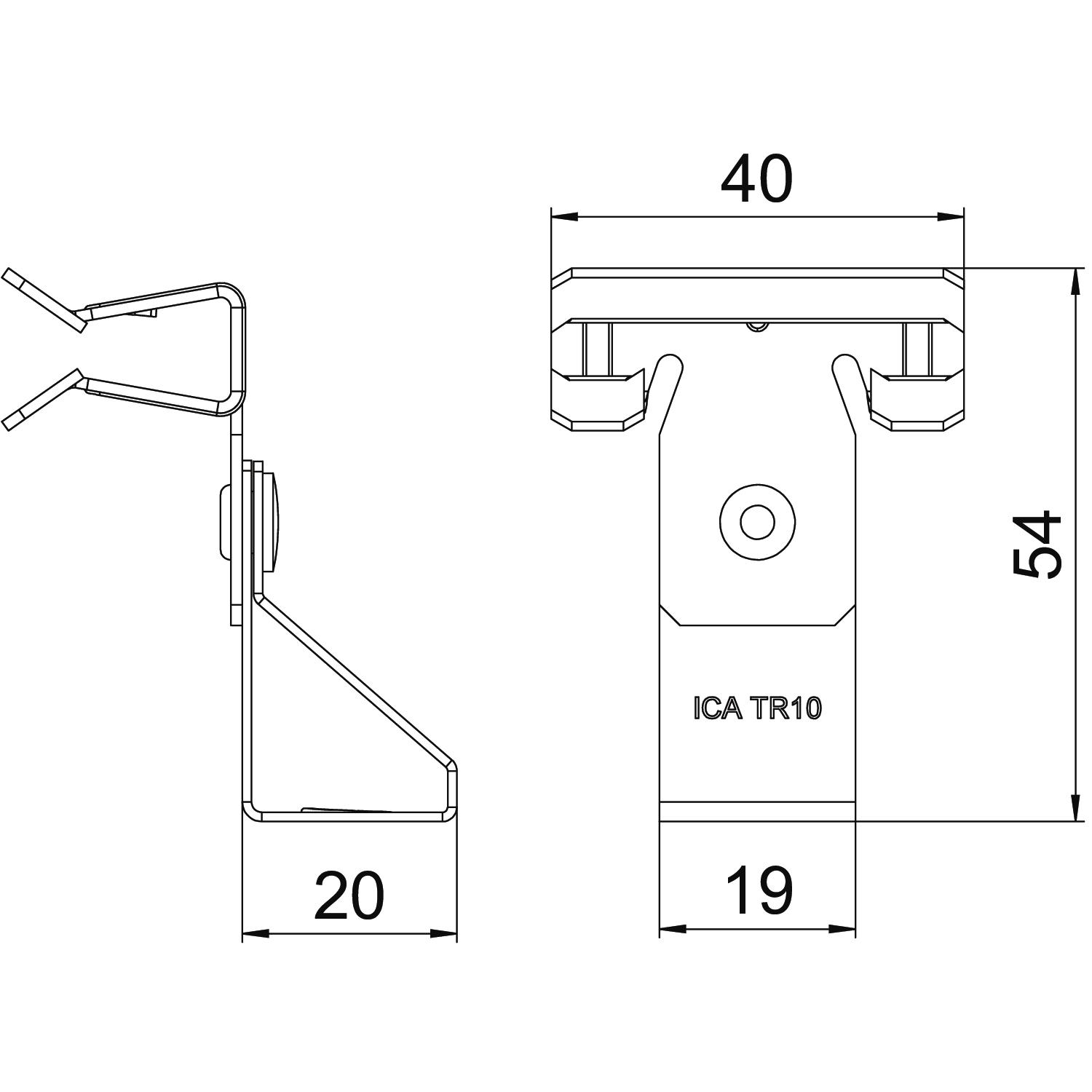 Support clamp with threaded rod seat for individual mounting solutions. Fastening through knocking onto steel girders.