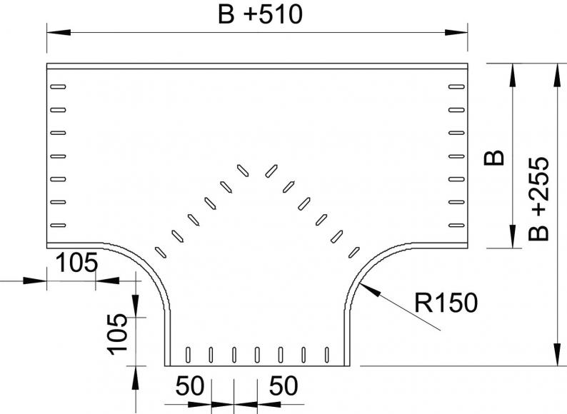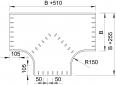 Fitting in round design. The interior radius of the fitting is 150 mm. All the sides are designed for the same cable tray width.