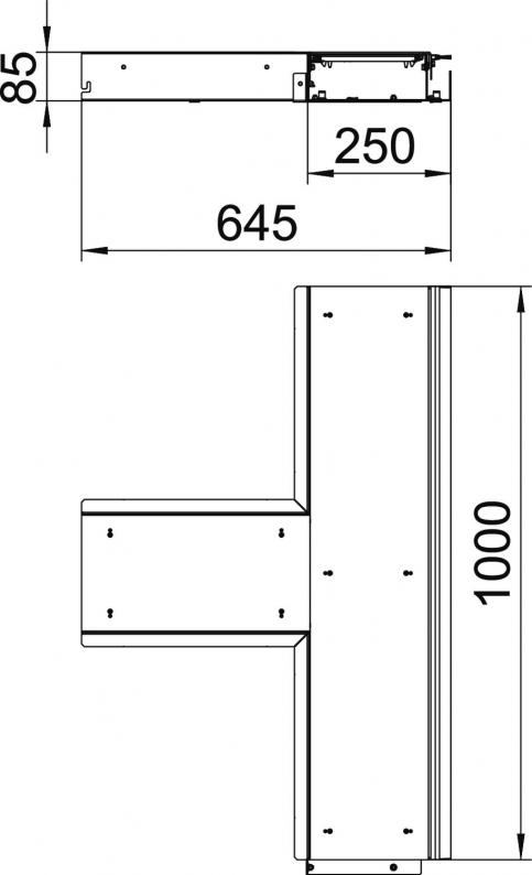 Ready-to-mount connection of a trunking unit with a brush bar and a trunking unit for cable laying, consisting of trunking bases, two lids, height-adjustable side profiles and brush bar arranged on the wall side for cable alignment. The scope of delivery contains two lid butt seals and two connectors.