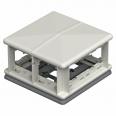 Raised-height installation unit for the installation of eight individual accessories with a support ring or support bracket on four sides. The current types (4 + 4) are separated using a partition. When multiple accessories are used, the connection capacity can be increased. Screw fixing groove for accessories: 60 mm, vertical.