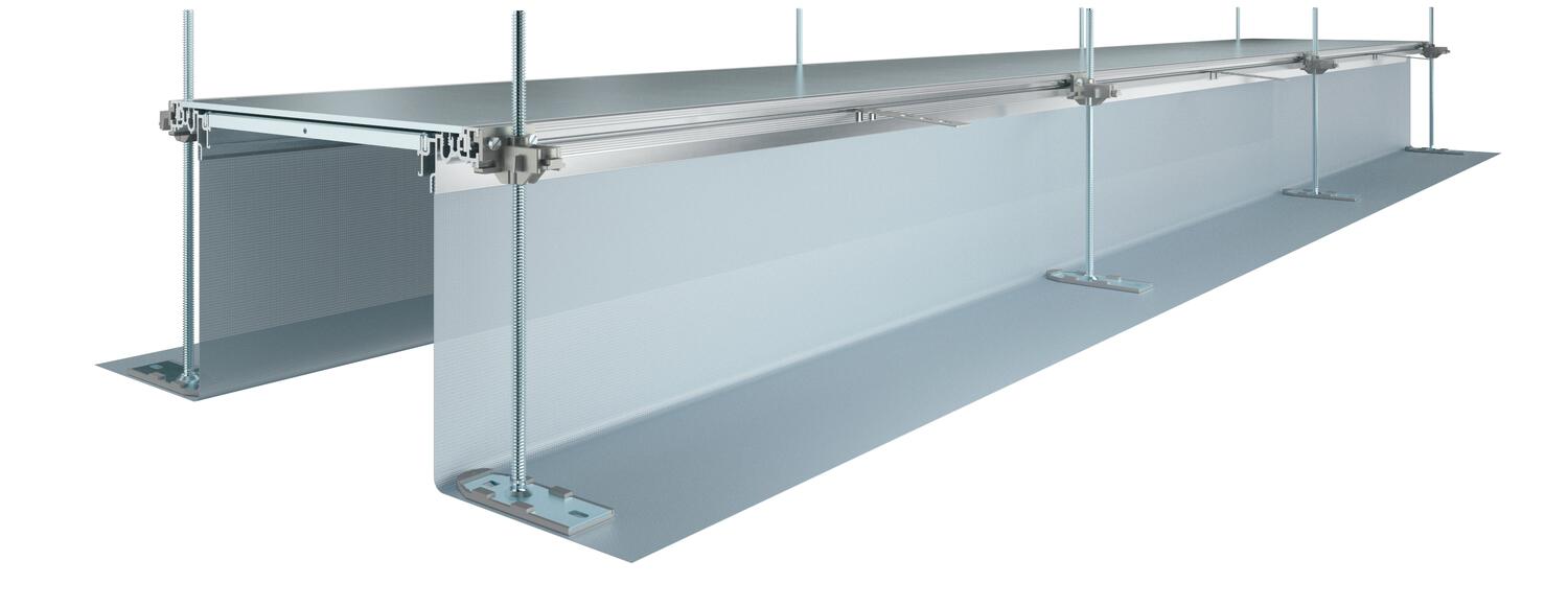 Ready-to-mount trunking unit for cable routing consisting of 3 blind lids, 2 side profiles with attached flexible side wall made of metal mesh, floor covering contact profiles with a height H of 3 mm. The scope of supply contains six height-adjustable fastening brackets, six screed anchors and three lid butt seals for nominal trunking widths 200, 300 and 400mor six lid butt supports for trunking widths 500 and 600. The essential levelling units (observe height adjustment) for the 400, 500 and 600 lid supports are not contained in the scope of delivery and should be ordered separately. On delivery, the trunking lids are screwed on.