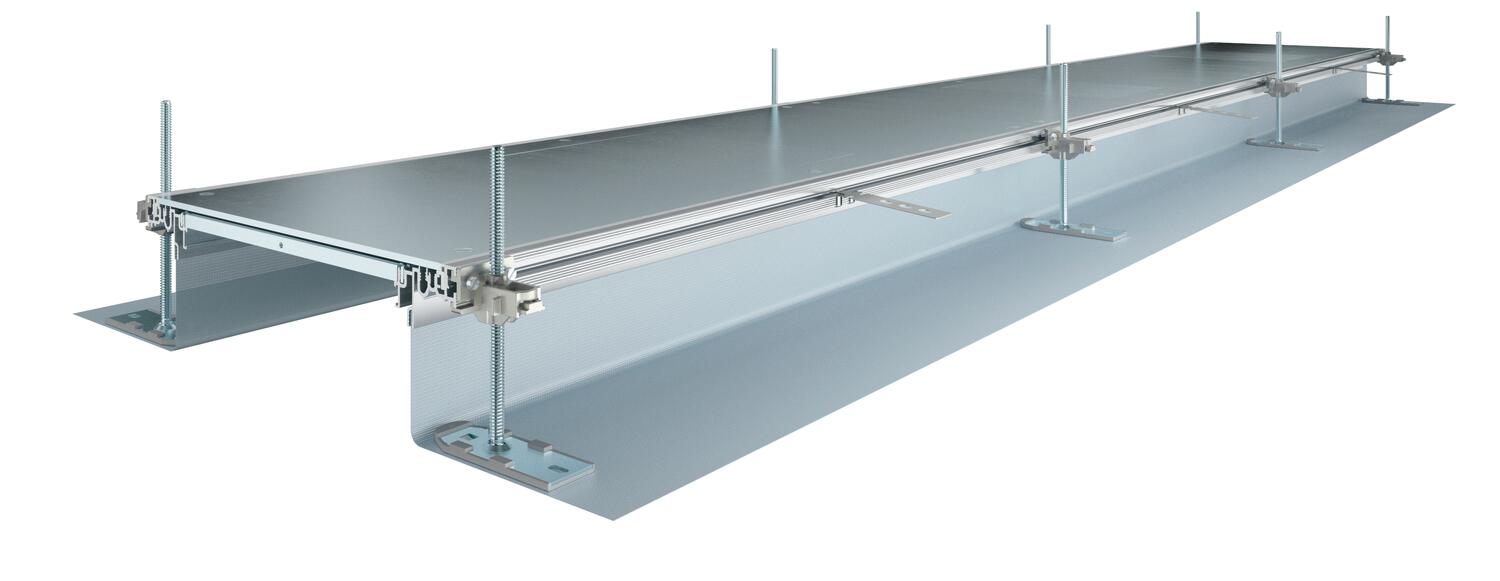 Ready-to-mount screed-flush trunking unit for cable routing, consisting of three system covers, two side profiles with attached flexible side wall made of metallic mesh, floor covering contact profiles with H = 3 mm. For dry interior rooms with dry-care floors. Also suitable for wet-care floors with appropriate system accessories. The scope of delivery contains six height-adjustable fastening brackets, six screed ties and three lid butt seals for nominal trunking widths 200, 300 and 400 or six lid butt supports for trunking widths 500 and 600. The essential levelling units (please observe adjustment height) for the lid butt supports 400, 500 and 600 are not contained in the scope of supply, please order separately. On delivery, the trunking lids are screwed on.