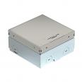 Square floor socket for use in dry-care systems and screed floors in indoor areas. Installation housing with pre-marked insertion openings for pipes (M20/M25). Cover adjustable to top edge of floor covering using four height-adjustment supports. The minimum installation depth is 75 mm, the height-adjustment range +30 mm. Frame and cover made of stainless steel and visible in the floor covering. Cover with decorative plate. Empty housing for a Modul45® installation device and a data socket. When delivered, the item is closed with a blind plate.