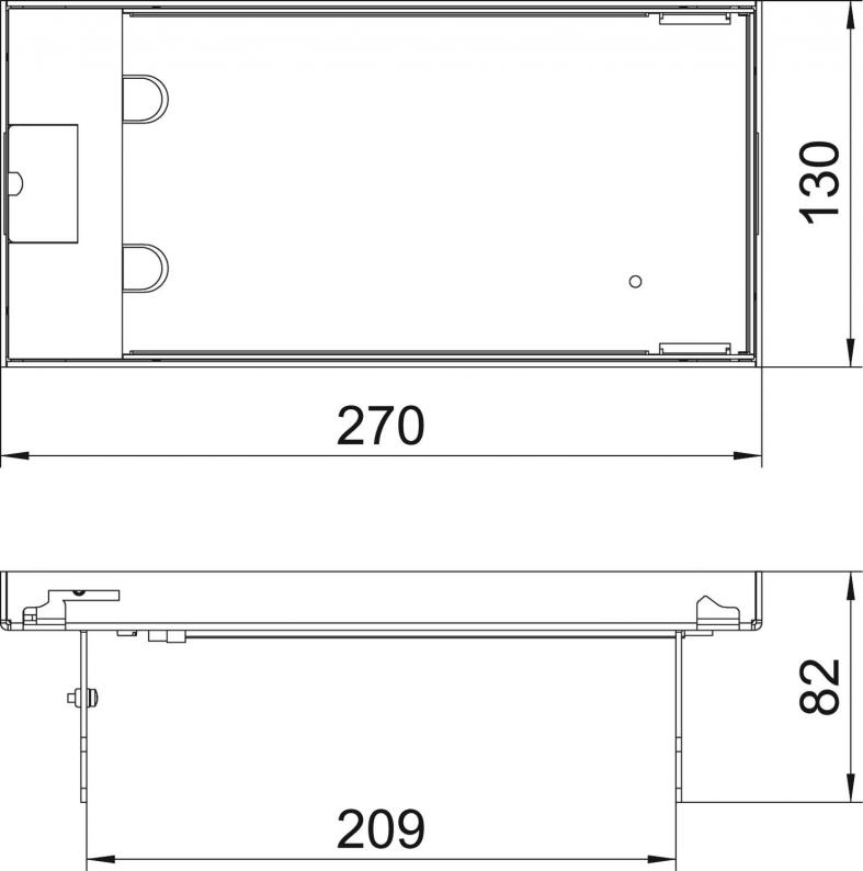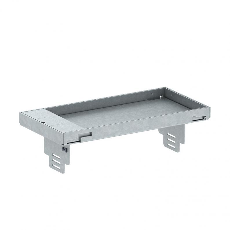 Height-adjustable cassette with one cord outlet. Suitable to accept a UT universal support. Stainless cassette and cord outlet.