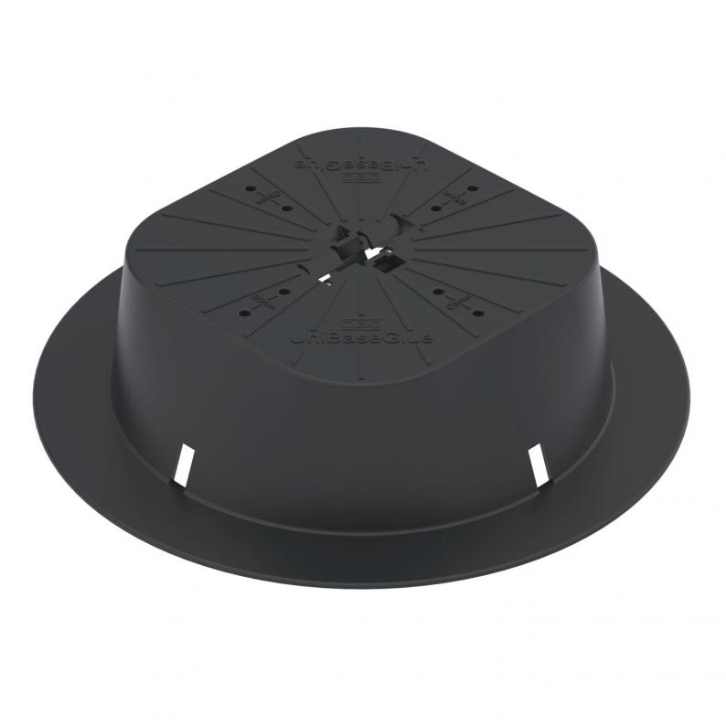 Universal stand for gluing on flat roofs. Can be used for routing cables with cable trays or mesh cable trays in conjunction with 165 MBG HGRM roof conductor holders. Gluing collar must be selected according to the substrate.