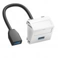 Multimedia support with one USB 3.0 connection socket, slanting cable outlet, with labelling panel, short USB 3.0 type A connection cable, socket-socket version. Support plate with locking fastening, suitable for horizontal and vertical installation in the system environment.