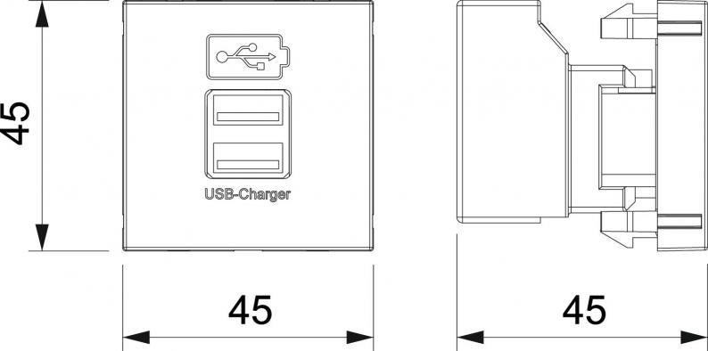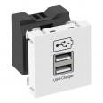 USB charging device with two USB type A sockets, for charging 1‒2 mobile devices, maximum charging current 1x 2,100 mA or 2x 1,050 mA.