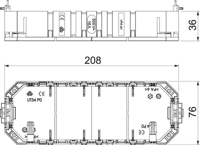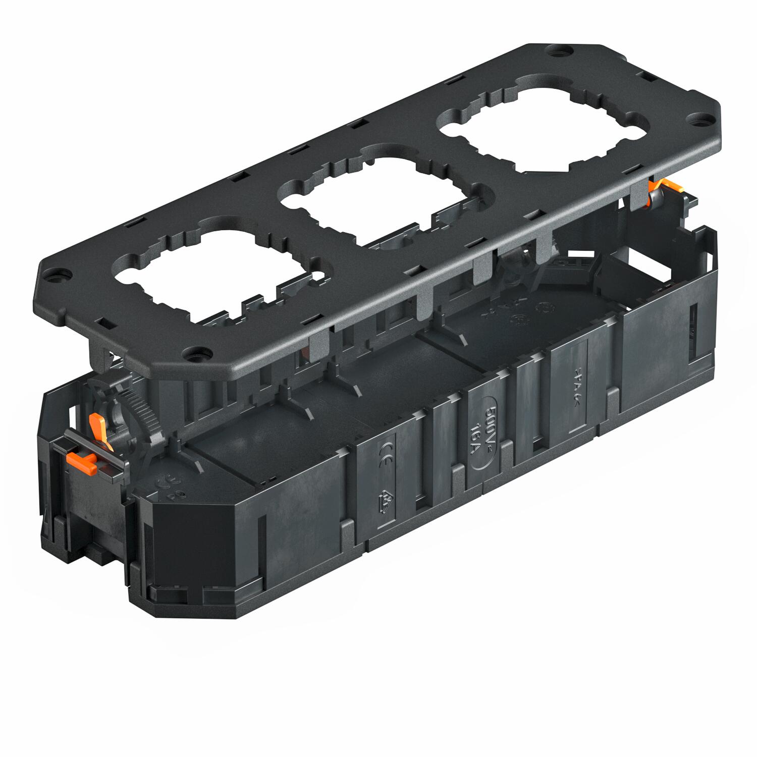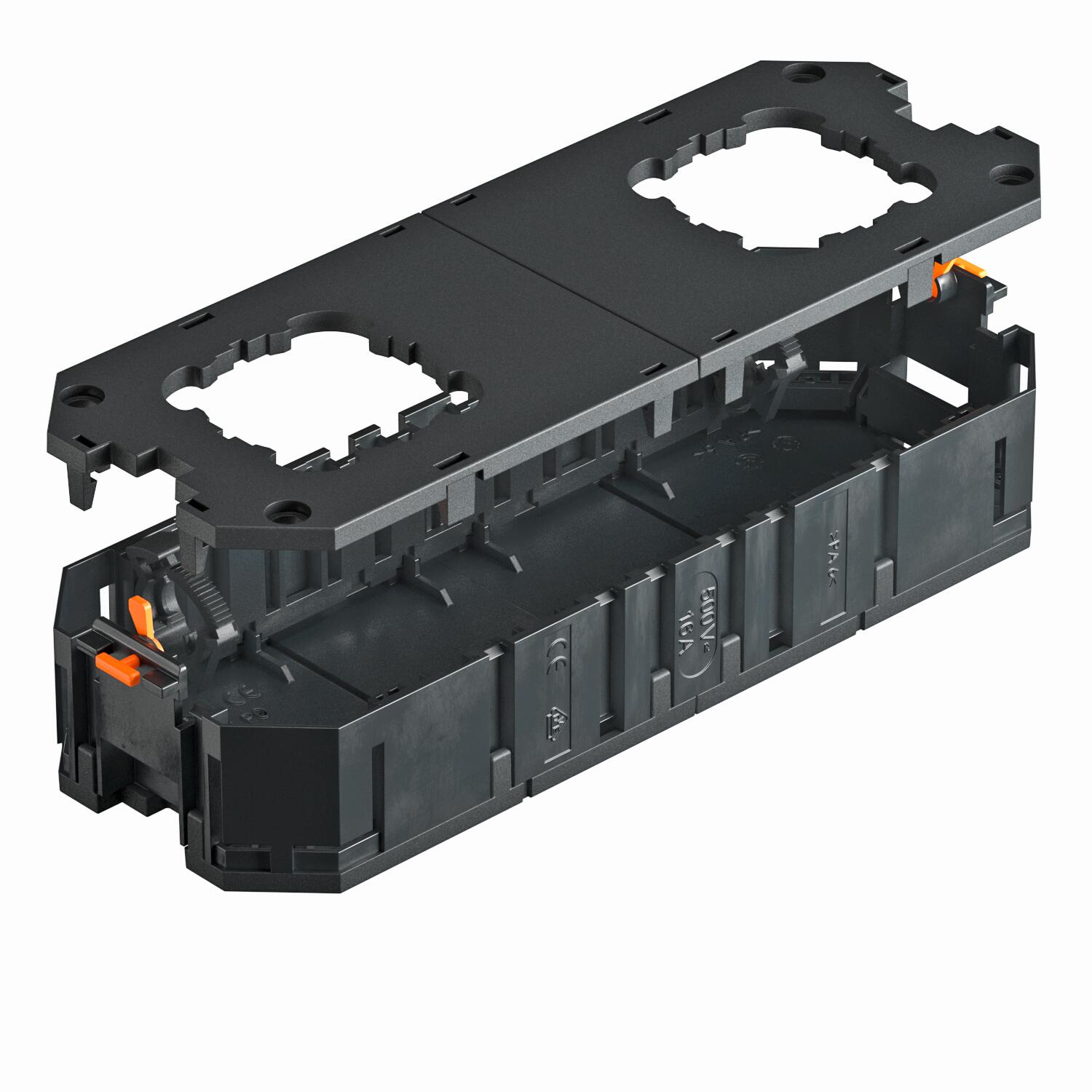 Universal support with two strain reliefs for electrical installation in device installation units of nominal sizes R7, R9 and 9.