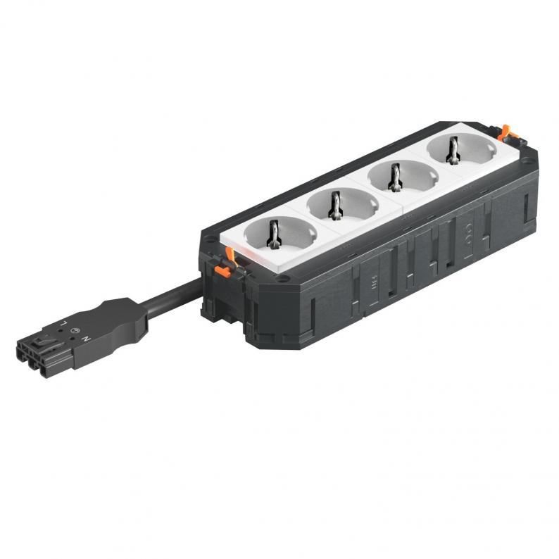 The ready-for-connection UTC4 universal support has 4 pre-installed 33° protective contact sockets in white, 250 V~ 16 A.