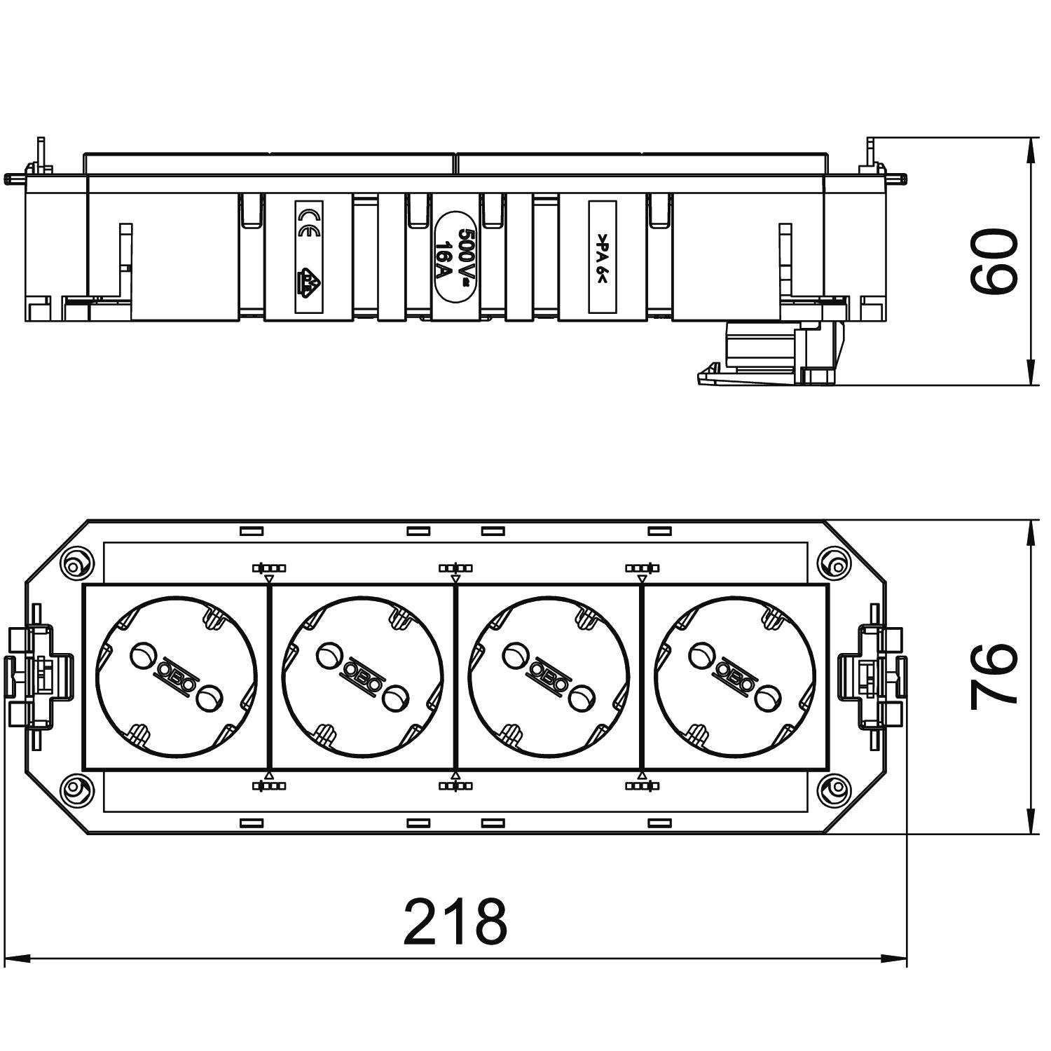 The ready-for-connection UTC4 universal support possesses two pre-installed 33° protective contact sockets in pure white and two pre-installed 33° protective contact sockets in pure orange of 16 A. Suitable for VL connection cables and device installation units of nominal size R7, R9 and 9. The protective contact sockets in pure orange are protected by a type 3 surge protection module according to DIN EN 61643-11.