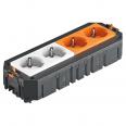 The ready-for-connection UTC4 universal support possesses two pre-installed 33° protective contact sockets in pure white and two 33° pre-installed protective contact sockets in pure orange of 16 A. Suitable for VL connection cables and device installation units of nominal size R7, R9 and 9.