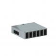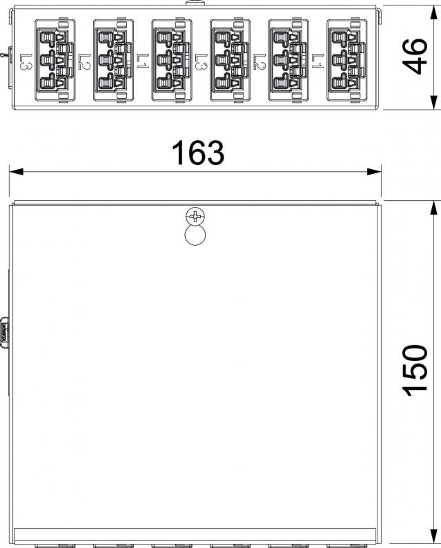 Output: 6 self-locking plug connectors, 3-pin, in black, 25 A, type WINSTA® MIDI (socket part: 2x L1, 2x L2, 2x L3).