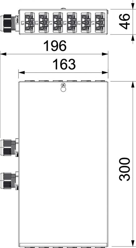 Input: 2x three-phase circuit via a screwless terminal block, 5-pin, for cable cross-sections of 0.5–4 mm².