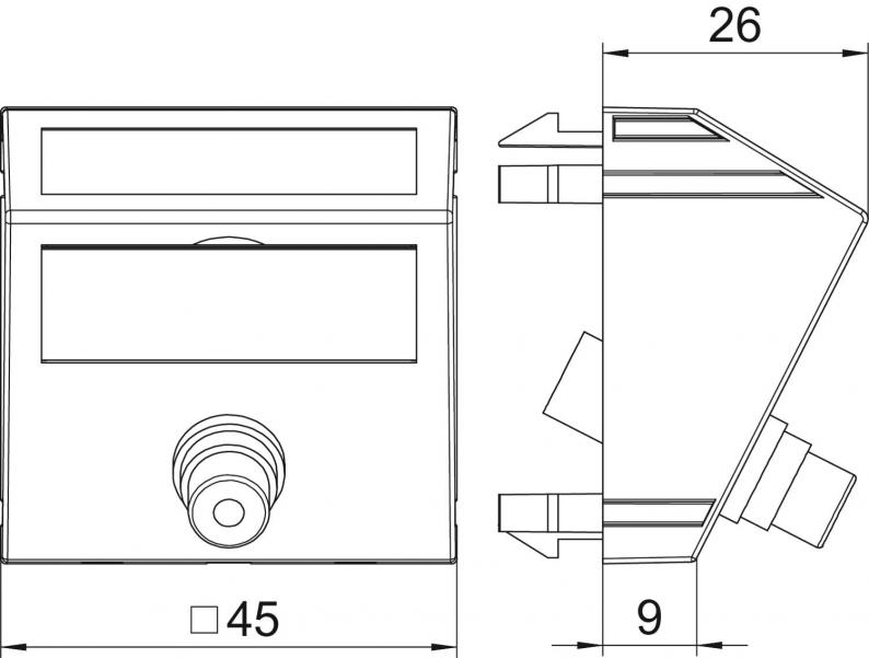 Multimedia support with one cinch connection socket for composite video, slanting cable outlet, with labelling panel, cinch coupling (RCA), socket-socket version, colour coding yellow. Support plate with locking fastening, suitable for horizontal and vertical installation in the system environment.