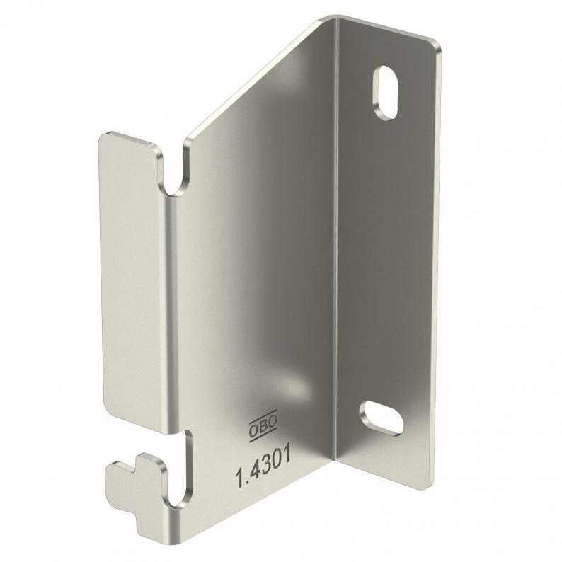 Wall holder for vertical wall fastening of the C mesh cable tray. Screwless mesh cable tray fastening on the wall holder.