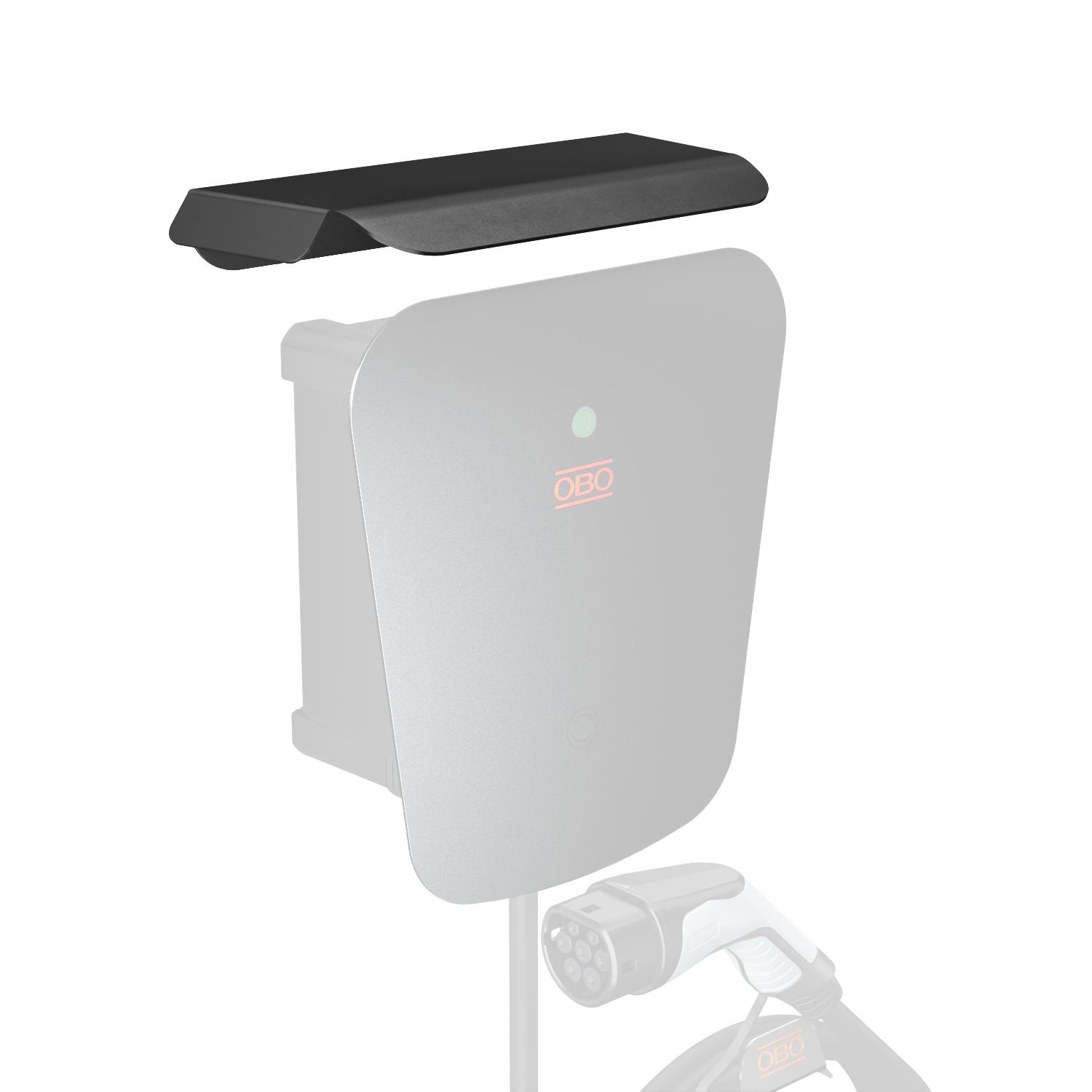 Weather protection roof for the Ion charging stations Basic and Key when mounted outdoors, pressure balance plug and mountig kit for brickwalls included.