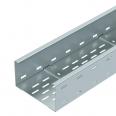 Wide span cable tray system, perforated, with a side height of 110 mm.