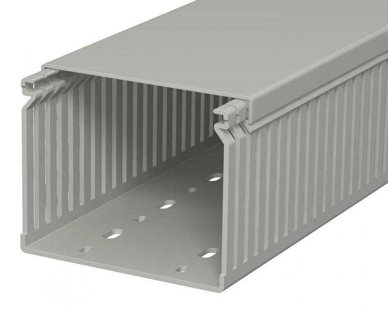 Wiring duct, incl. cover and base perforation, for horizontal and vertical routing of electrical cables in the switchgear cabinet. Designed as a metric duct. The nominal dimension of the system size corresponds to the internal dimension of the duct. Retainers are broken out without tools. The flush-floor routing of cables is possible through predetermined break points. Tested to DIN EN 50085-2-3. Special lengths on request.