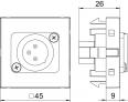 Multimedia support with one XLR connection socket, straight cable outlet, without labelling panel, 3-pin XLR socket with screw connection. Support plate with locking fastening, suitable for horizontal and vertical installation in the system environment.
