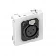 Multimedia support with one XLR connection socket, straight cable outlet, without labelling panel, 3-pin XLR socket with screw connection. Support plate with locking fastening, suitable for horizontal and vertical installation in the system environment.
