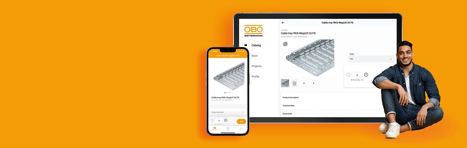 You now have access to the OBO product catalogues, including filter and search functions, even offline, without an Internet connection – from anywhere and at any time. Create and export projects, no matter your current location. Download our app now!