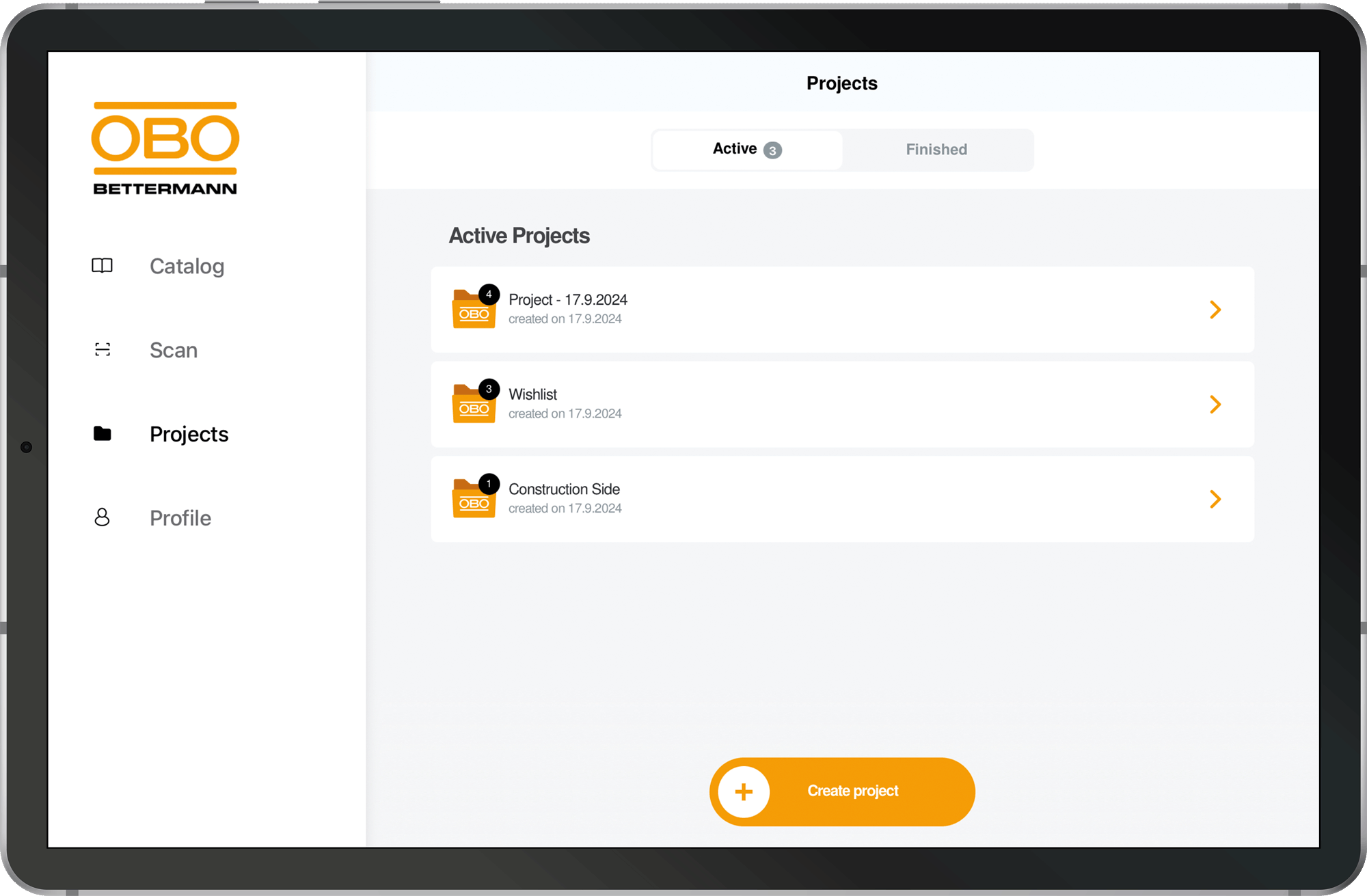 Create your own projects and add products from OBO’s catalogues
