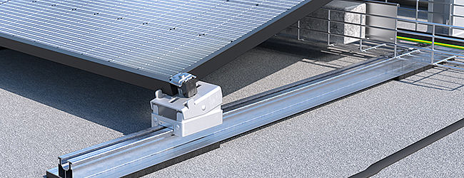 Our Basic system for flat roofs is highly resilient and quick to install. It is notable for its integrated cable routing system and simultaneous ballasting. The system is infinitely variable thanks to a flexible ridge gap.